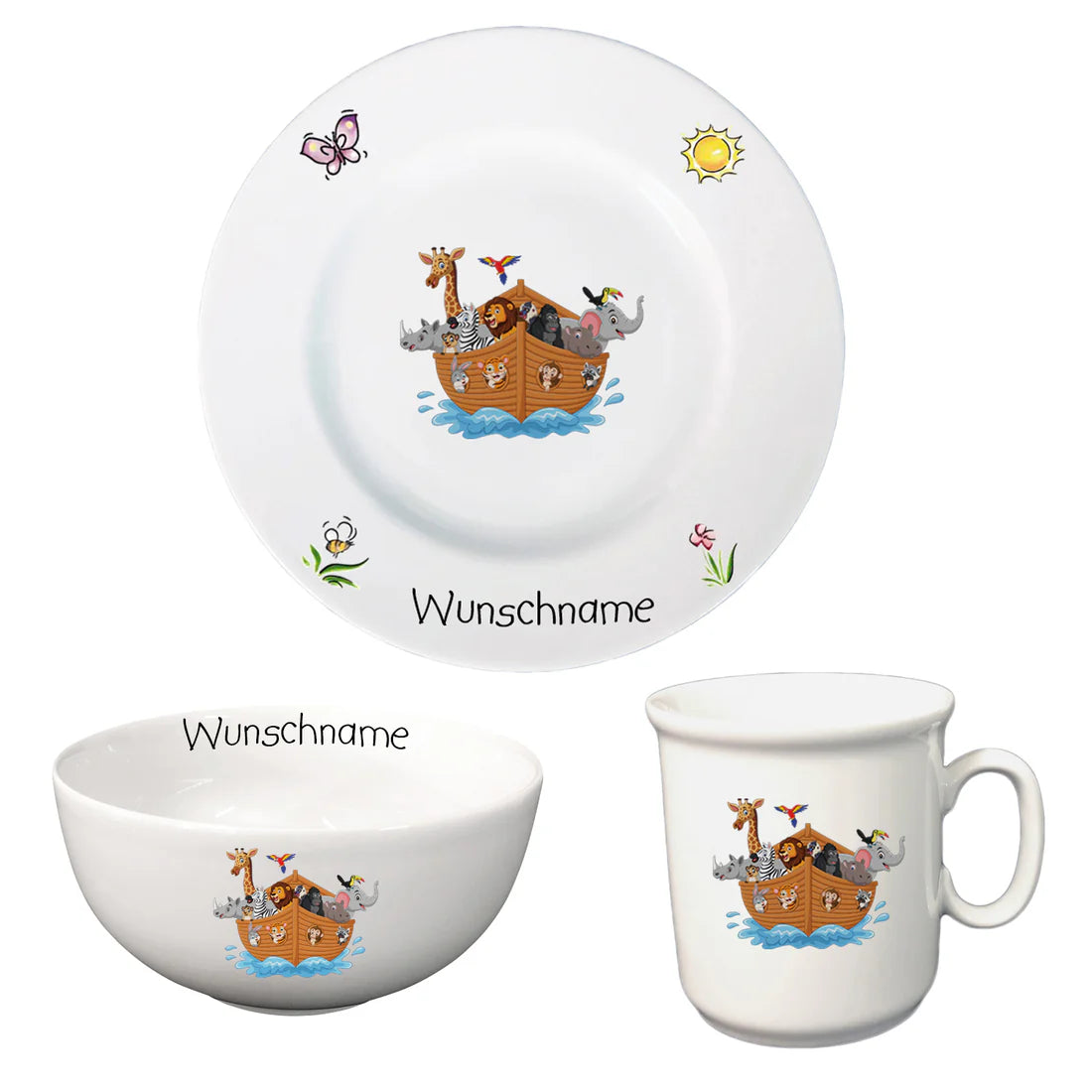 Personalisierbares Kindergeschirr aus Porzellan – verschiede Motive & Wunschnamen